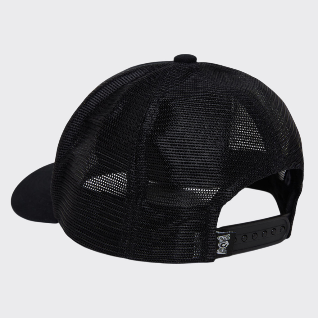 Os icônicos bonés Von Dutch Originals estão de volta. Modelo estilo trucker na cor preta, possui aba curva.